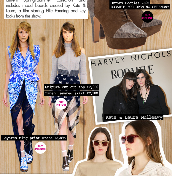 Rodarte new label at Harvey Nichols .Designed by Kate nd Laura Mulealy .Eclectic prints and splits ,leather tshirts and cool wave sunglasses thrust Rodarte into the spotlight at http://www.harveynichols.com/
