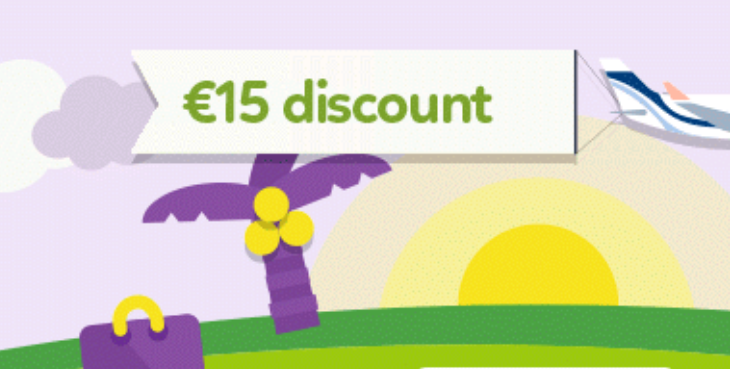 It’s 24-Hour-Super-Sale! You should not be paying full price today. Take advantage of a €15 discount on bookings from Ireland to anywhere in the world for any travel period. The discount will be automatically deducted from your chosen flight. Click here to take advantage – limited time only!